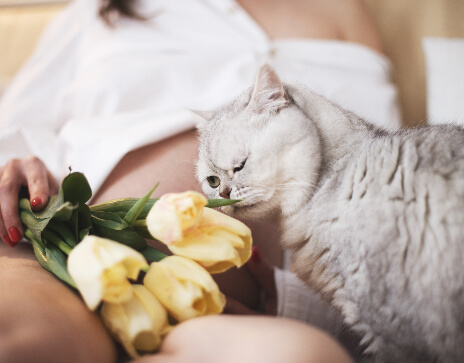 The cats are sensitive to change, and some become very protective of their expecting female owners, while others become anxious and aggressive.